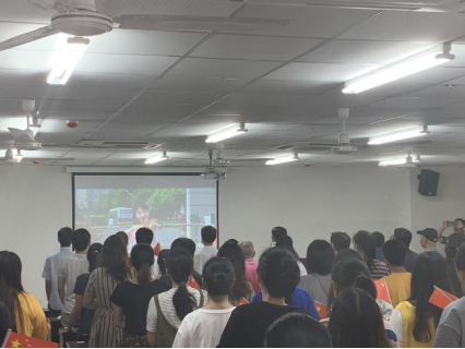 大会尾声,全体党员同志观看beat365在线体育为新中国成立七十周年的献礼视频,在党的信念感召下,手挥五星红旗,一同歌唱《我和我的祖国》,新时代要有新气象,更要有新作为。吾辈当自强,昂首阔步,奋勇向前。