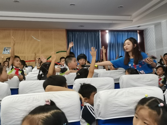 课堂上,主讲教师姜传睿党员制作了精美的PPT,通过图片、视频等形式,通俗易懂地向一年级小员工讲授食物食用方法、食品安全、用餐安全等相关知识,同学们反映热烈,积极举手抢答问题,课程助手黄淋艺党员协助分发文具小奖品。课程最后,全体同学朗诵了唐代诗人李绅的《悯农》,对农民伯伯辛苦劳作和珍惜每一粒粮食有了更加深刻的认识。