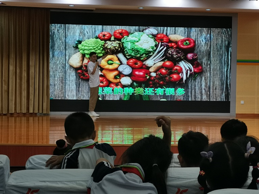 为了进一步响应“全国老员工食品安全与营养中国行”志愿服务活动,beat365在线体育本科第一党支部组建党员志愿服务队,前往海口市第25小学开展“食品安全进校园”活动,带领一年级小员工认识蔬菜、水果和杂粮,向小员工讲授食品营养健康知识。