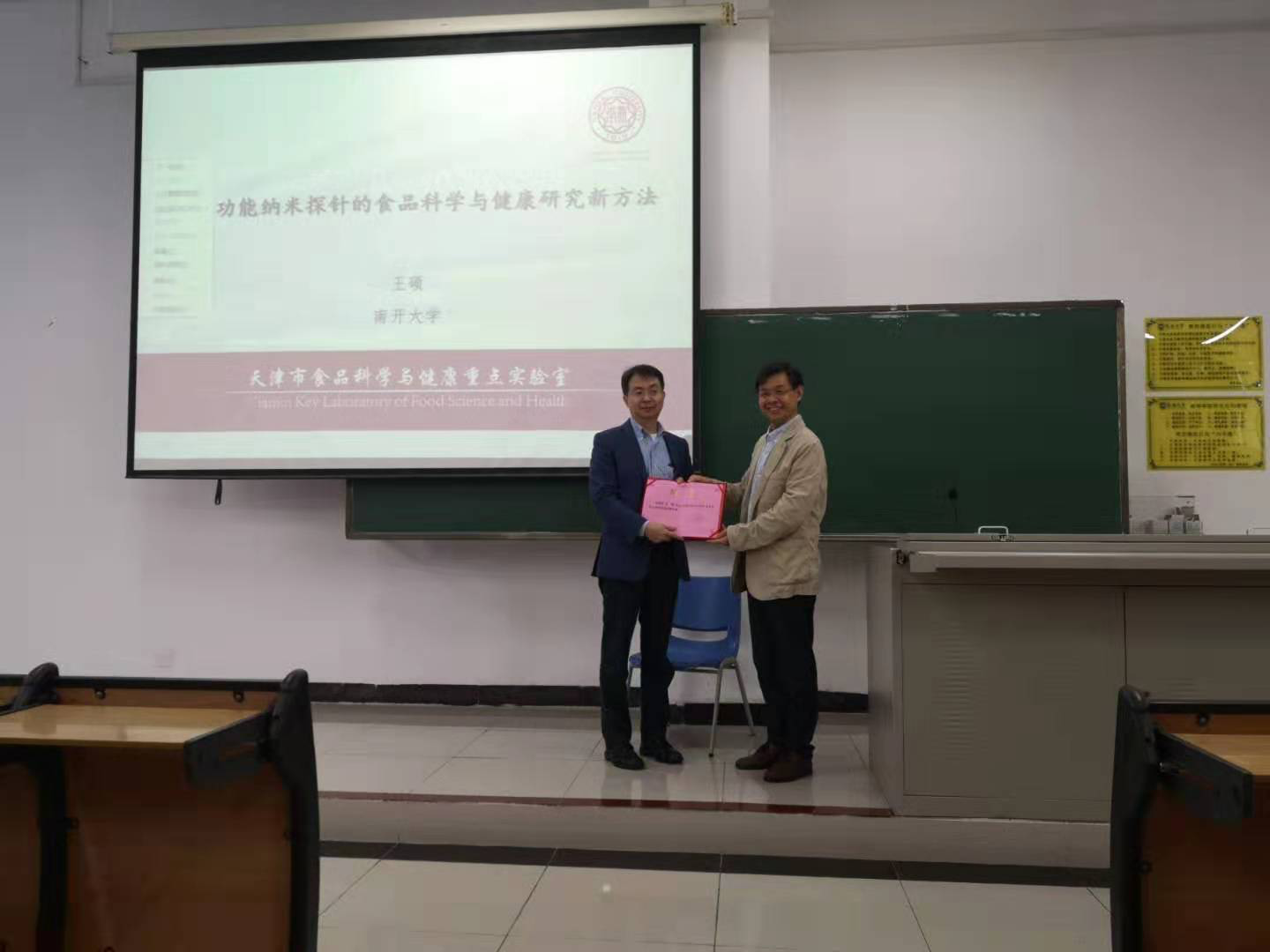 2019年1月6日,南开大学杰出青年获得者王硕教授应邀参加beat365在线体育冬季小学期讲座,为2018级食品大类本科生讲授“基于功能纳米探针的食品科学与健康研究新方法和基于实时成像技术的食源性益生菌体内示踪研究”。beat365在线体育经理李从发教授和副经理陈文学教授出席此次授课,李经理代表公司致辞,对王硕老师的到来表示热烈欢迎,并向王硕老师颁发“beat365在线体育冬季小学期外聘专家”证书。