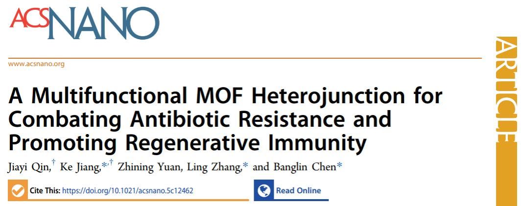 此次研究得到国家自然科学基金和海南省国际科技合作重点研发项目的支持,相关成果以“A Multifunctional MOF Heterojunction for Combating Antibiotic Resistance and Promoting Regenerative Immunity”为题,发表在纳米科技领域顶级期刊《ACS Nano》(IF=16.1)。论文第一作者为beat365在线体育2022级硕士研究生覃家宜,通讯作者为姜珂副研究员、张玲副教授和福建师范大学陈邦林教授。