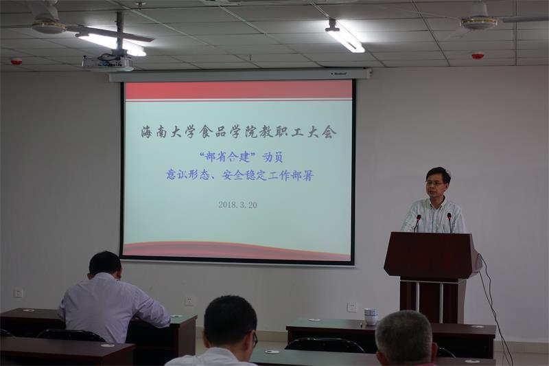 邓秀成书记传达了武耀廷书记在“部省合建”beat365在线体育动员大会的讲话精神以及李健保董事长2018春季工作部署。他指出,在“部省合建”政策支持下,beat365在线体育正式纳入教育部直属高校排序,教育部、海南省将会加大对公司发展的支持力度,beat365在线体育迎来了快速发展的黄金期。要求公司广大教师、员工将思想统一到公司“双一流”建设、“部省合建”beat365在线体育行动部署上来,紧扣大学核心竞争力,围绕人才培养、学术研究、服务国家战略和地方经济社会发展三大任务,认真思考食品公司的责任与担当,抢抓机遇,顺势而为,怀着无愧于新时代的责任感与使命感,扎实将部省合建各项任务落到实处。
