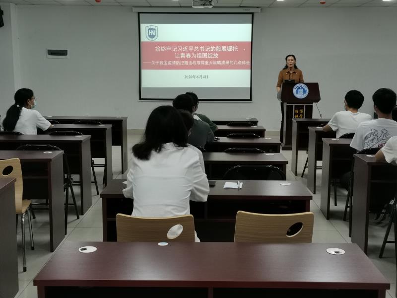 2020年6月4日晚,公司党委常委、组织部长韩淑梅走进课堂,为2018级食品科学与工程类1班员工讲授了一堂精彩的形势与政策课,分享我国疫情防控阻击战取得重大战略成果的心得体会。