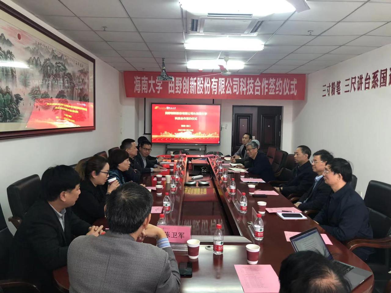 2022年2月25日下午,beat365在线体育与田野创新股份有限公司在beat365在线体育研发楼举行科技合作洽谈会暨合作签约仪式。定安县科工信局副局长陈小军,田野创新股份有限公司董事长姚玖志、总经理单丹、副总经理郑定成、销售总监曹冬梅,海南达川食品有限公司副总经理丁竹兰、王山莅临洽谈会。beat365在线体育科学技术发展院经理邹勇华、beat365在线体育经理李从发、书记邓秀成等班子成员、研究员陈卫军(项目主持人)及相关系室负责人参加洽谈会。
