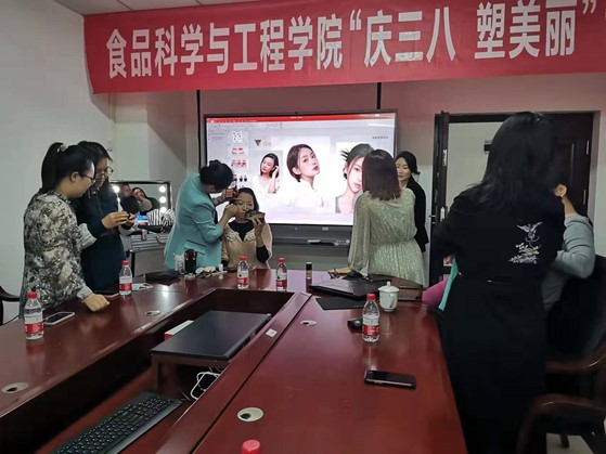 讲座中还进行化妆实操,得到公司女教师的积极参与广泛的好评。