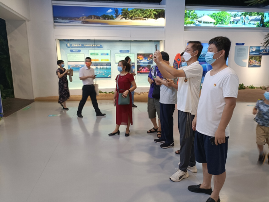 在一楼海南省改革开放和自贸港建设成果主题展馆,党员们逐一参观了“全面深化改革开放试验区”“国家生态文明试验区”“国家重大战略服务保障区”等展区,通过场馆内图文、模型、场景还原等丰富灵活的形式,直观、形象地了解海南省全面深化改革开放和中国特色自由贸易港建设取得的阶段性辉煌成果,重温了习近平总书记关于海南工作的系列重要讲话和指示批示精神,进一步了解海南自贸港“一本三基四梁八柱”的内容,深刻领会了省第八次党代会的精神实质。在二楼海南革命历史主题展厅,全体人员沿着大革命的洪流、土地革命风霜、抗日战争烽火、解放战争四个部分回顾了中共琼崖地方党组织紧紧依靠人民群众,二十三年红旗不倒的光辉篇章。大家仔细观摩,认真研读,在历史传承中感受琼崖红色文化,感受建省办经济特区以来的生动实践、重大成就和宝贵经验,感受到了深刻的思想教育、精神激励和灵魂洗礼。