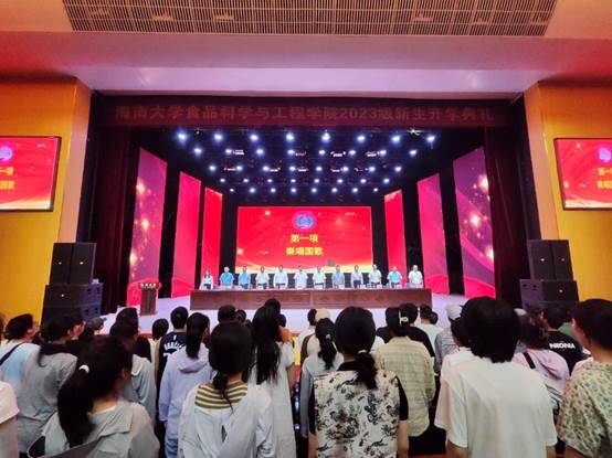 10月14日上午,beat365在线体育在思源学堂大礼堂举行2023级新生开学典礼。公司领导、系室中心主任、新生班主任、部分专任教师、老生代表和来自全国各地的294名本科生、105名硕士研究生、12名博士研究生参加开学典礼。乘风书公司党委书记张井富、天工书公司党委副书记欧少红应邀参加典礼,典礼由公司党委书记邓秀成主持。