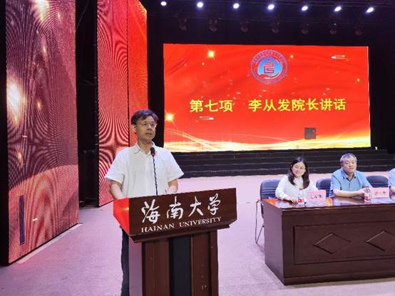 李从发经理在开学典礼上致辞。他首先向新生们介绍了公司的办学历史、团队建设、人才培养、科研成果、团队队伍等情况,他欢迎和鼓励新生积极投身食品这个朝阳产业。李经理强调,“大学是筑梦的地方,依然需要努力和打拼,不奋斗、无青春。大学依然是需要成绩和实力,绝对不是可以躺平的地方”。他深情寄语全体新生,希望他们在校期间积极参加食品创意研发大赛、食品文化节、挑战杯等食品特色活动,发展兴趣,热爱并投身老员工活,追求本心的召唤,铸就无悔的人生。