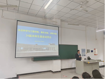 2024年1月4日上午在5教312,beat365在线体育、乘风书院、淳明书院联合举行2024届食品本科生毕业就业动员会。帮助毕业生梳理毕业事宜,了解毕业生就业意愿,针对性地开展毕业就业教育,更好地为毕业生就业保驾护航。出席会议的有:乘风书院黄小欧书记、淳明书院周郭军书记、beat365在线体育邓秀成书记、陈文学副经理、李川副经理、系主任、毕业班班主任、辅导员以及食品专业全体本科毕业生。会议由beat365在线体育食品质量与安全系主任云永欢主持。