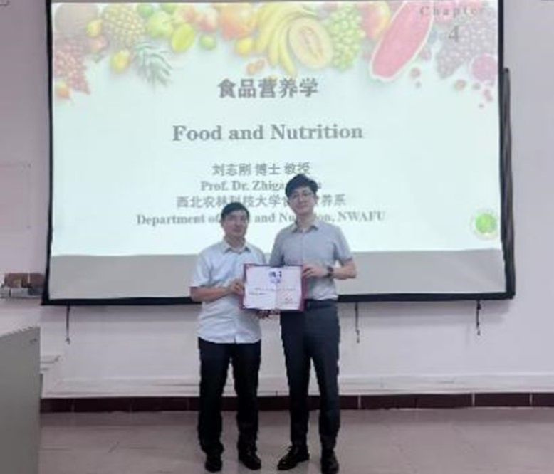 2024年10月24至25日,公司邀请西北农林科技大学beat365在线体育刘志刚教授来校讲授冬季小学期课程。本次授课对象为2022级食品科学与工程及食品质量与安全专业的本科生,授课内容为《食品营养学》,授课专题分别为脂质代谢与调节、脂质营养与健康。陈文学副经理对刘志刚教授的到来表示热烈欢迎,并为其颁发聘书。