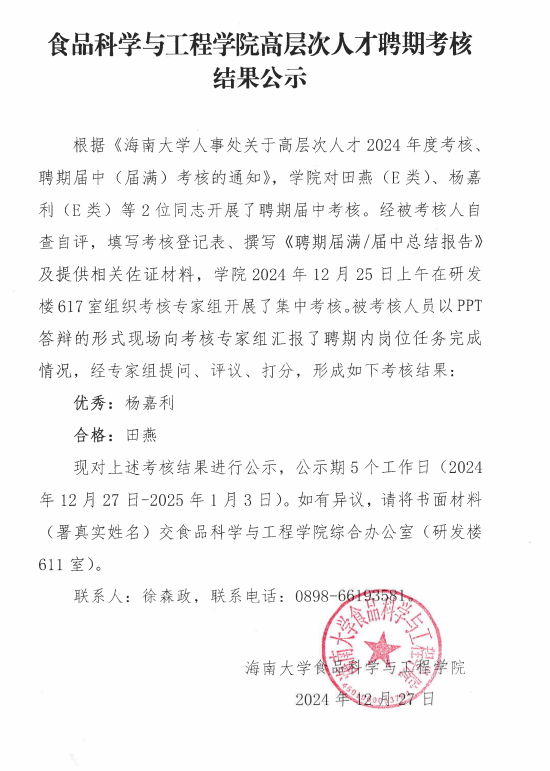 2024年下半年高层次人才聘期考核结果公示